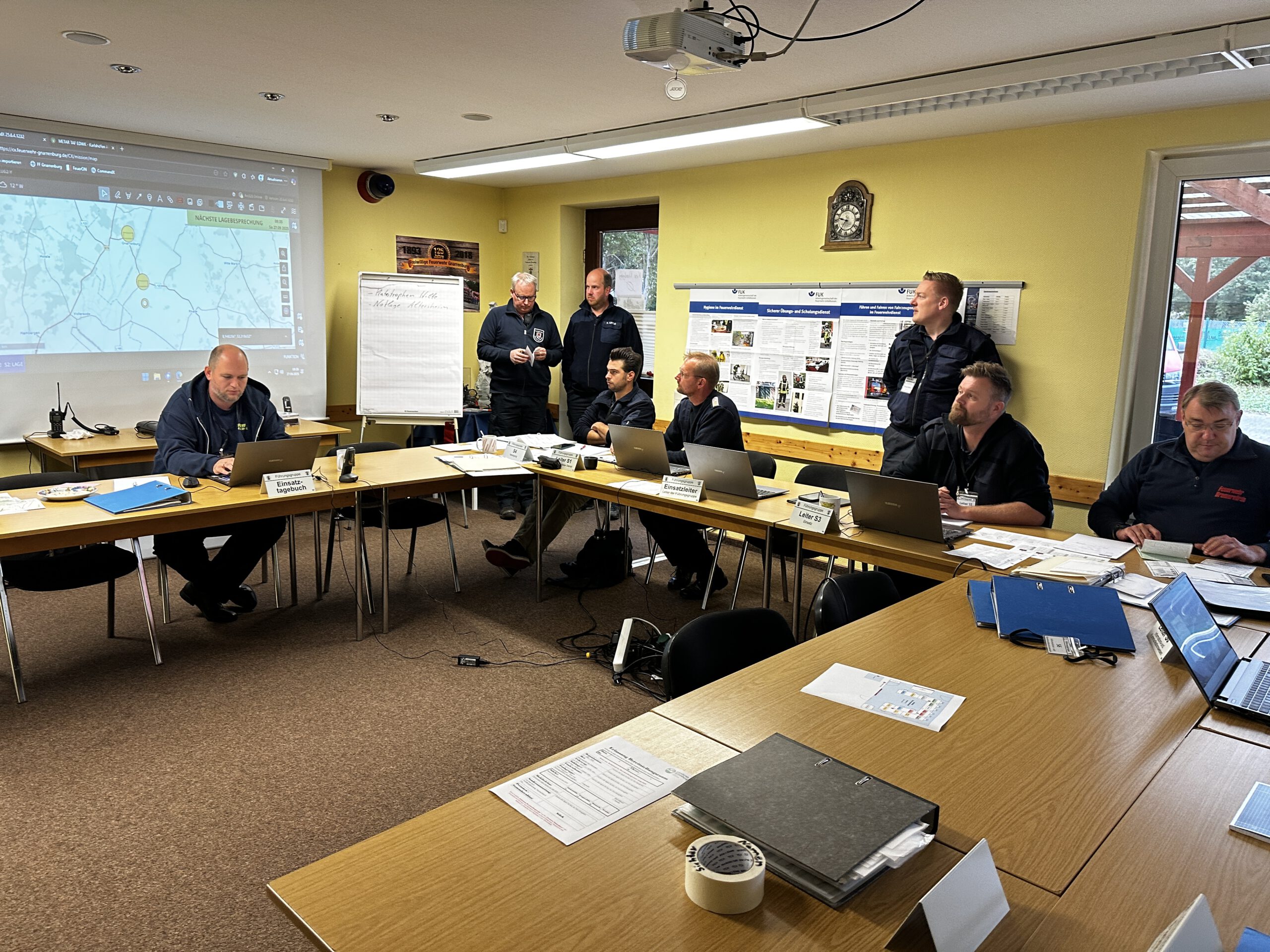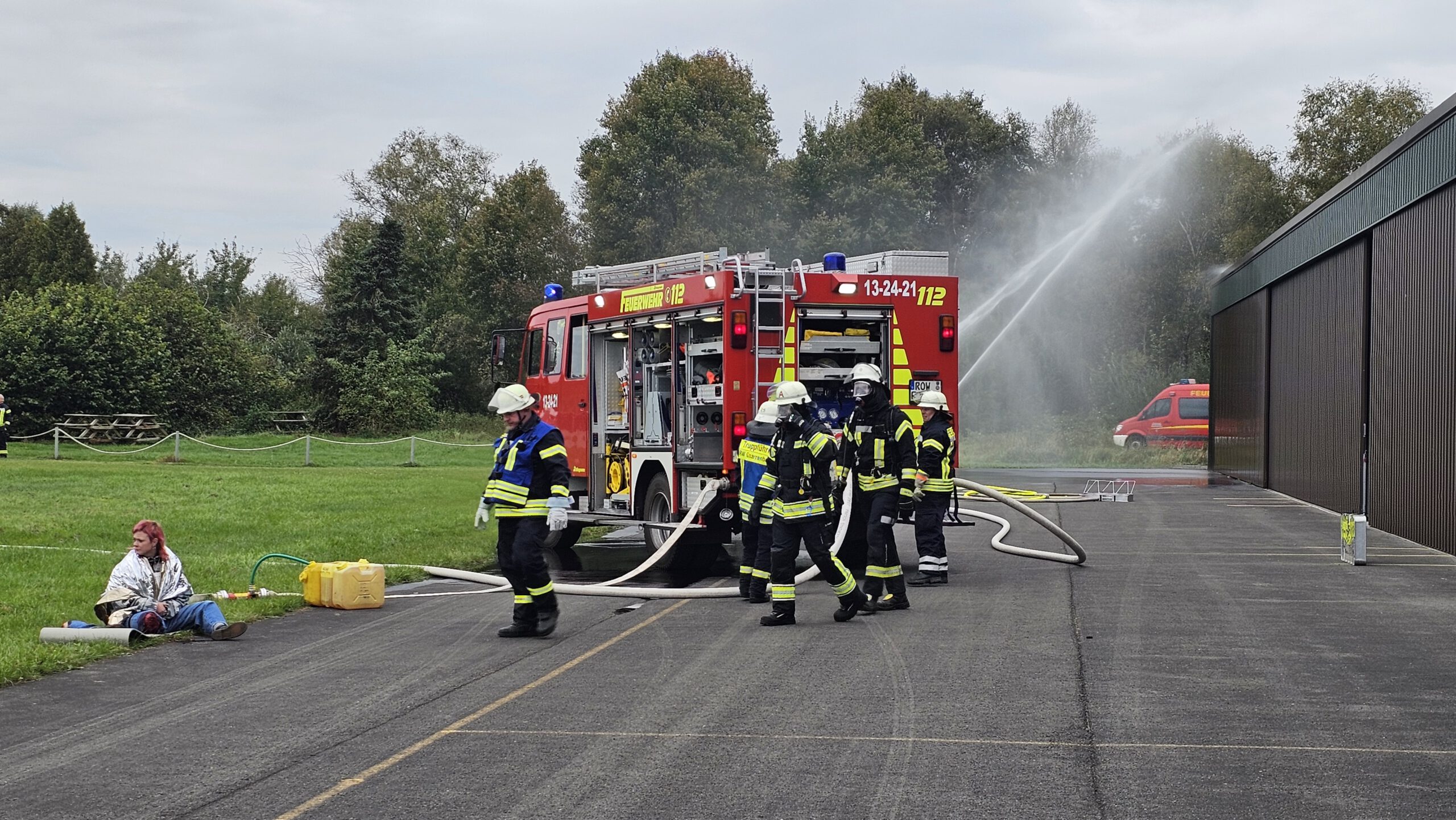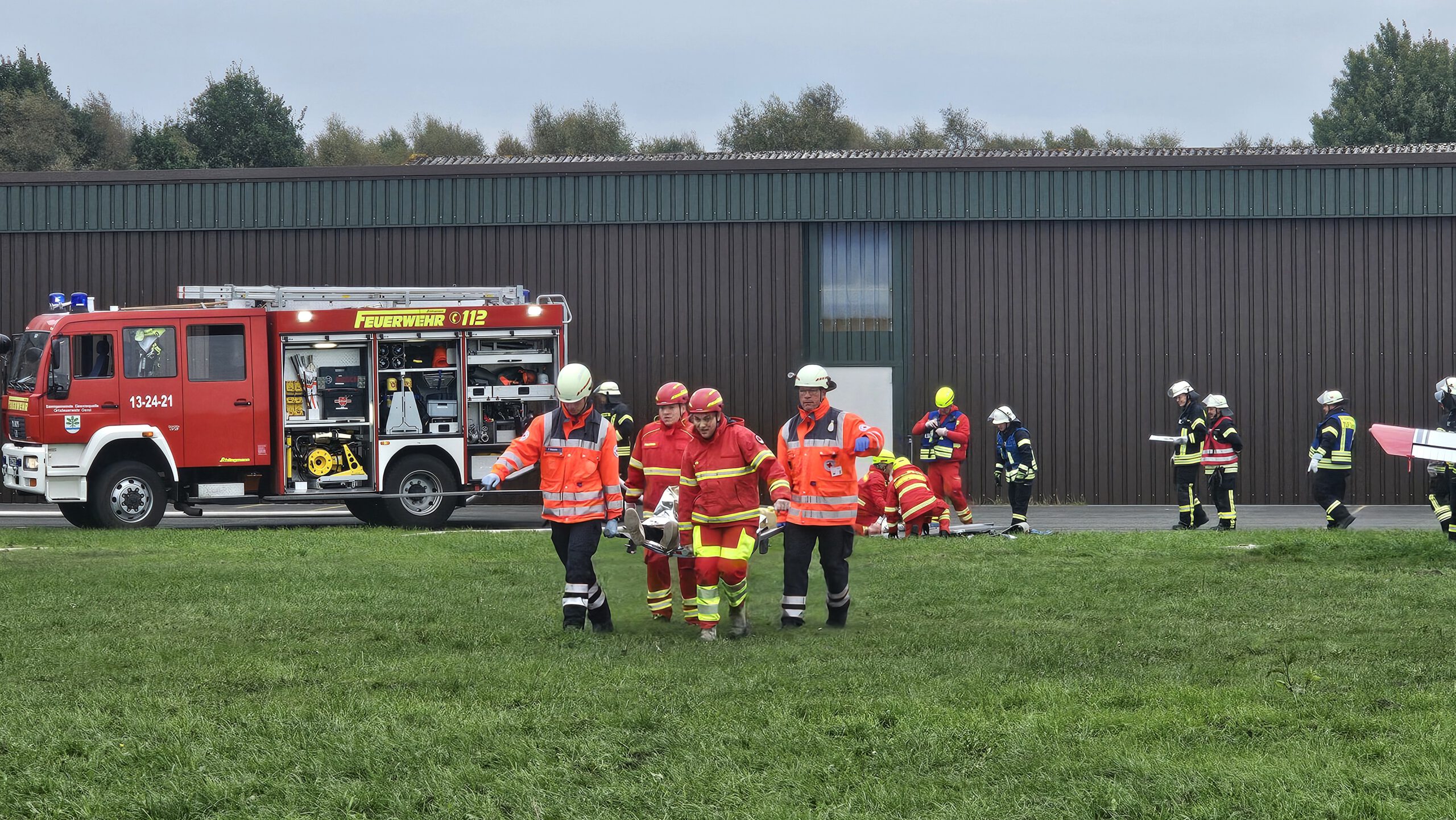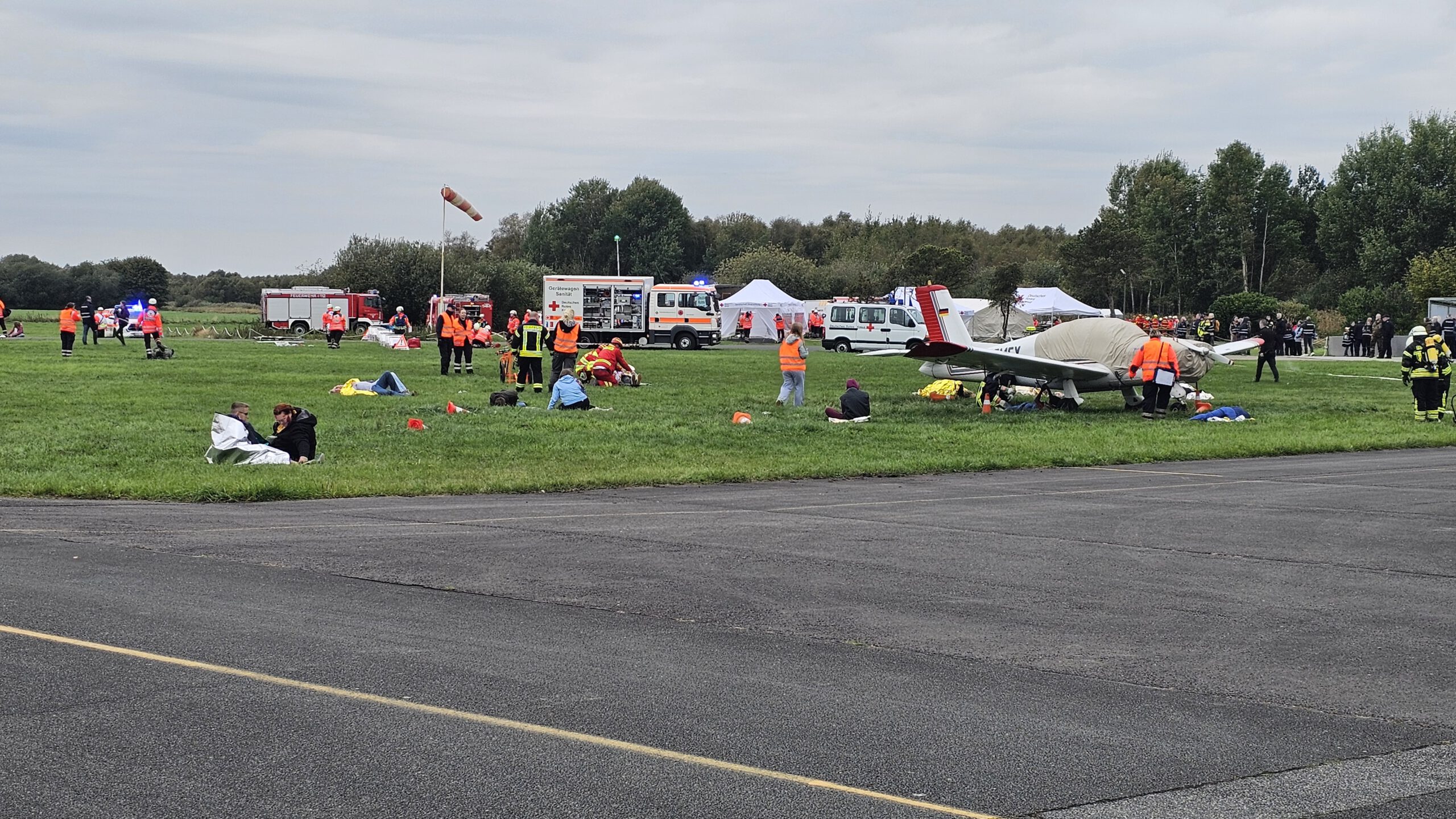 Am vergangenen Samstag probte die Kreisfeuerwehrbereitschaft Nord des Landkreises Rotenburg gemeinsam mit zahlreichen weiteren Einheiten ein komplexes Einsatzszenario. Schauplatz war der Flugplatz in Karlshöfen, wo eine simulierte Kollision zweier Flugzeuge mit Absturz in eine Besuchergruppe angenommen wurde.