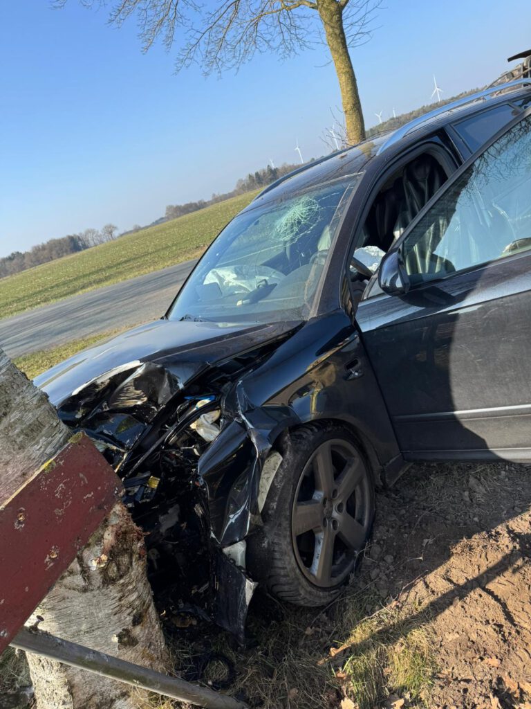 Bei einem Überholvorgang des Audi’s und dem Abbiegevorgang des Treckers kollidierten die beiden Fahrzeuge miteinander, wobei der Audi an einem Baum zum Stehen kam.